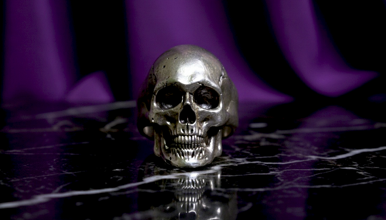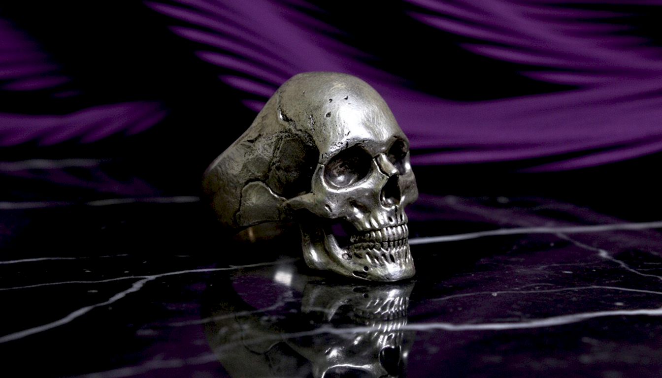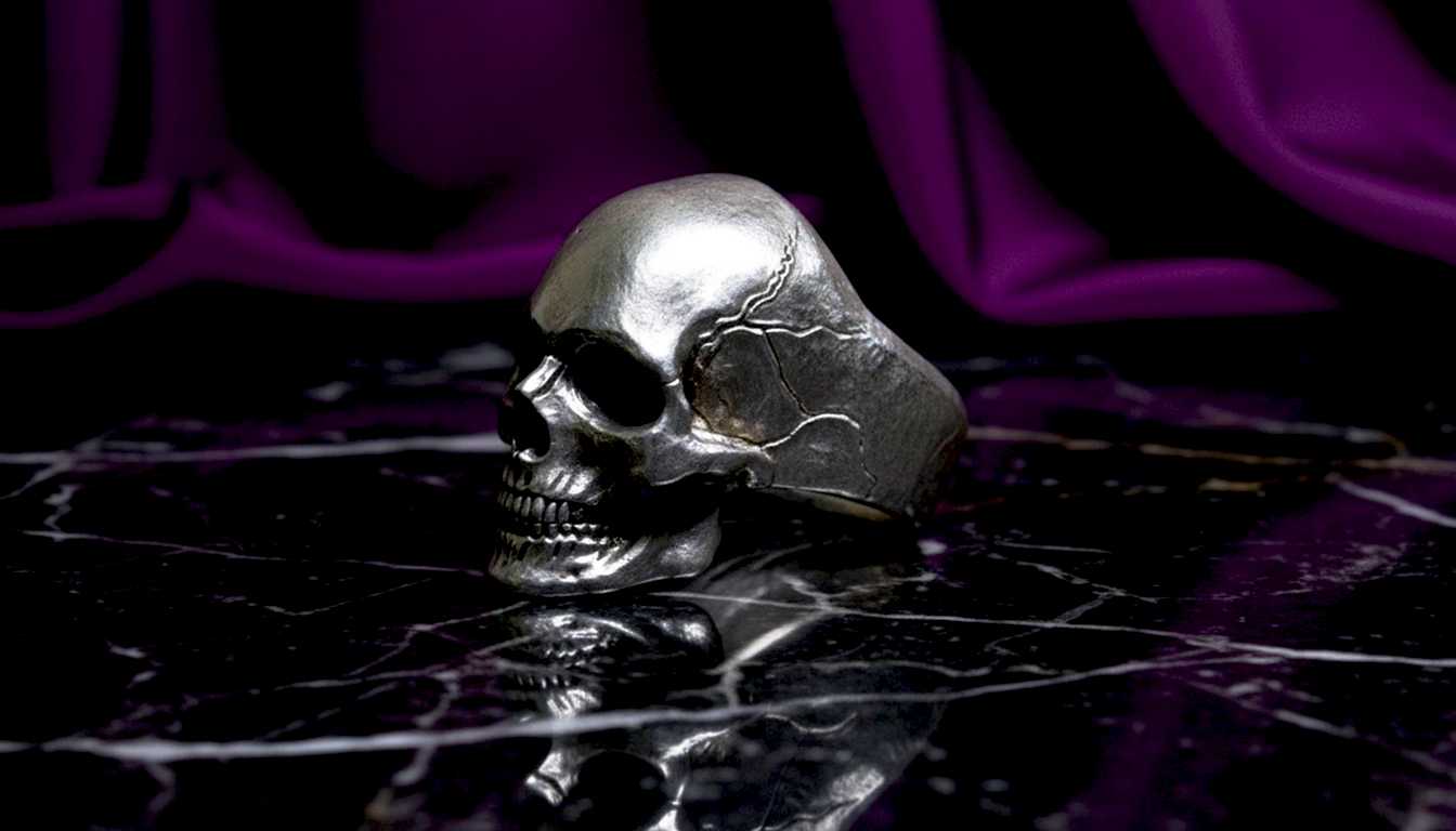 Este anillo de cráneo en plata .925 es una representación pura y contundente de la mortalidad. Sin adornos, sin distracciones: solo el cráneo, modelado con precisión anatómica, emerge de la banda como una escultura silenciosa que confronta al espectador con la fragilidad de la vida y la fuerza del espíritu.