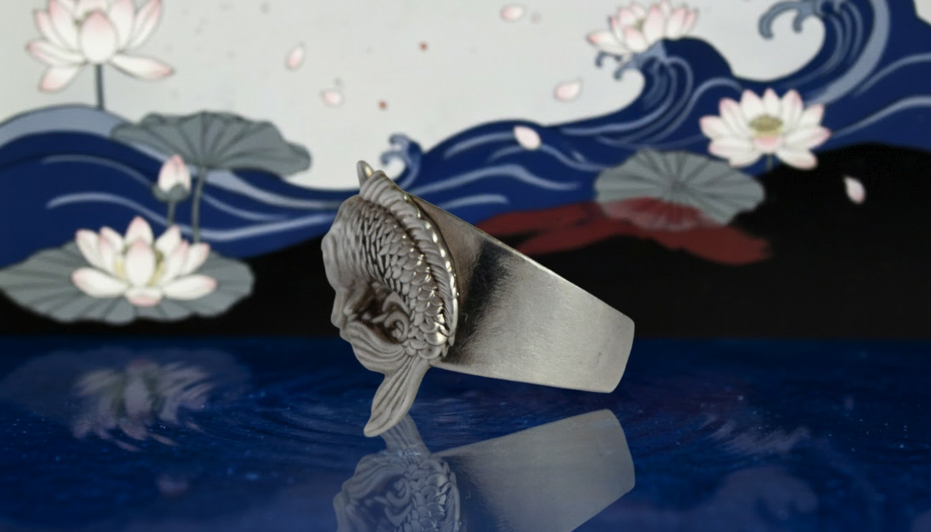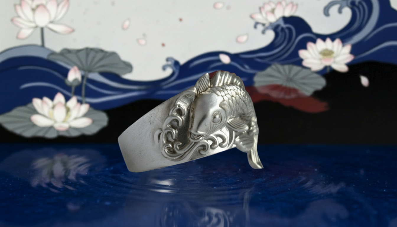 El Anillo Koi de Plata .925 es una joya que celebra la fuerza interior, la evolución y el cambio consciente. Tallado con maestría, muestra una carpa koi ascendiendo entre ondas fluidas, representando el valor de quien avanza contra la corriente y convierte los desafíos en crecimiento.
